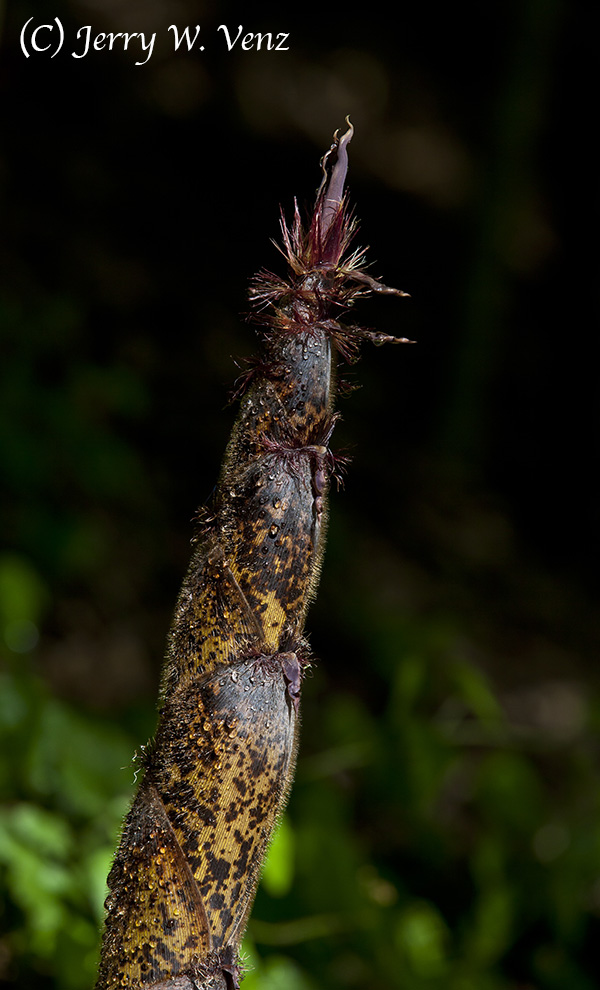This close-up shows the protective sheath starting to fall away from the now hardened culm; the green area.